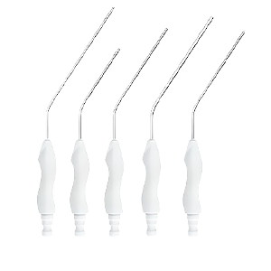 Produtos com aço inoxidável escovado, que evita o brilho e a reação, pontas arredondadas para um contato extra atraumático com os tecidos e tubo resistente de alta qualidade. Permite manipulação precisa da sucção com ruído mínimo