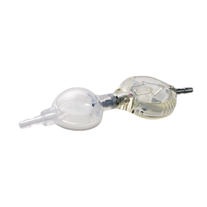 Conjunto para Hidrocefalia com antecâmara de silicone, com câmara em Pollissulfona de baixo perfil (4.6 mm), sistema de abertura com bola de rubi sintético e mola semicircular (sistema ball-in-cone) com possibilidade de 8 diferentes níveis de pressão (de 30 até 200 mmH2O).